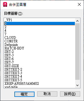 顯示依字母順序列示的圖層清單,所選圖層或物件可在這些圖層上合併。
