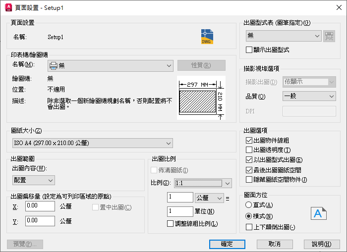 調整圖面方位並出圖圖面,使圖紙的短邊做為頁面的頂端。