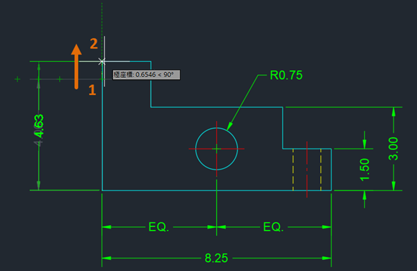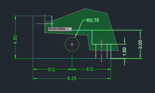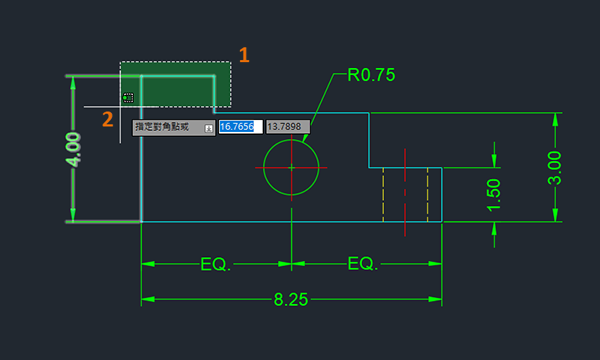 - 從右至左指定兩點來選取要拉伸的幾何圖形,建立一個框選視窗。