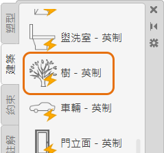 - 從選項板中選取「樹 - 英制」圖塊,然後按一下繪製區中的任意位置以放置圖塊。