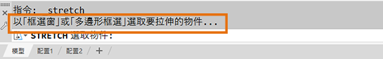 若要讓 STRETCH 正常運作,必須透過框選窗或多邊形框選來選取物件。