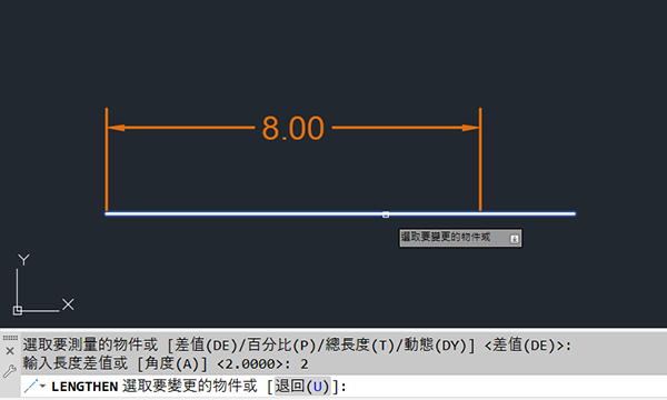 於指令提示下,您可以選擇選取物件以找出其目前長度。