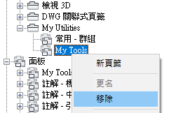 無法從功能區頁籤退回功能區面板的移除。如果移除錯誤的功能區面板,請按一下「取消」以關閉自訂使用者介面 (CUI) 編輯器,且不儲存所做的變更。執行此作業將退回任何其他您可能已進行的變更。