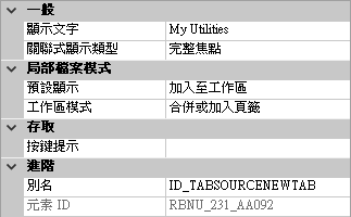 在「工作區模式」方塊中,指定將 CUIx 檔載入為局部自訂檔時是否將功能區頁籤合併或加入至功能區。