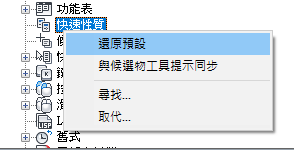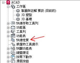 如果已勾選某個物件類型,在選取相同類型的物件時,以及 QPMODE 設定為 2 且 PICKFIRST 開啟時,則會在「快速性質」選項板上顯示該物件類型的性質。清除物件類型旁邊的勾選標記可以從「快速性質」選項板移除所選取的物件類型。