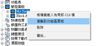 - 在「CUI 編輯器 - 確認複製到『功能區面板』節點」對話方塊中,按一下「是」。