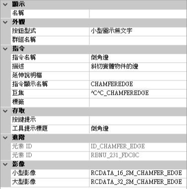 - 在「指令清單」窗格的「品類」清單中,選取「功能區控制元素」。