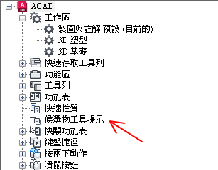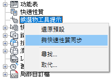 如果勾選了某個性質,則在圖面視窗中將游標置於所選物件類型的一個物件上時,會在候選物工具提示上顯示該性質。清除性質旁邊的勾選標記可以移除所選物件類型的性質。