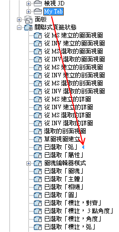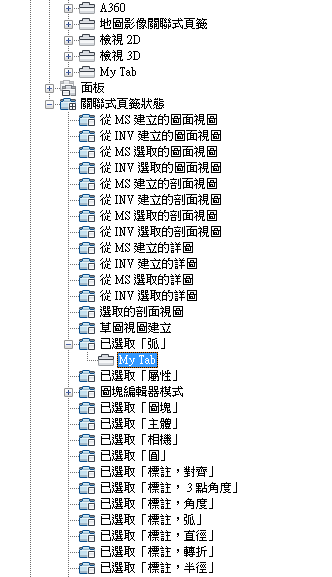 - 將功能區頁籤從「頁籤」節點拖曳至一個功能區關聯式頁籤狀態。