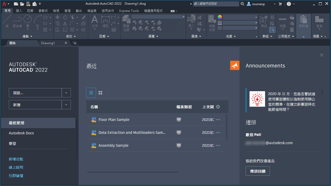 「開始」頁籤已重新設計,可為 Autodesk 產品提供一致的歡迎體驗。