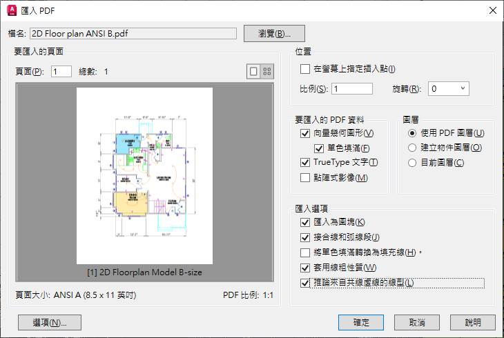 - 將 PDF 檔匯入為圖塊,而不是做為獨立物件。