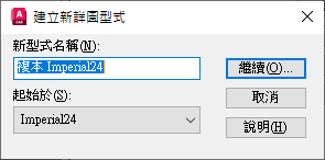 命名新詳圖型式。依預設,新的型式的名稱是「起始於」型式名稱,以「複本」做為字首。