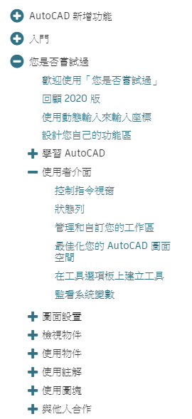 AutoCAD 說明有一個新的「快速參考」功能表,「您是否嘗試過」文章現在會放在一個目錄中,新的卡片格式能讓您更輕鬆地存取學習視訊。