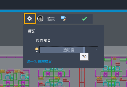 檢視匯入的標記時,您可以變更背景透明度以調整匯入標記的可見性。
