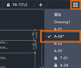 對圖面和配置頁籤所做的變更,可讓您更輕鬆地判斷哪個圖面和配置處於作用中狀態。變更還可讓您更輕鬆地查看圖面頁籤溢位功能表上哪個圖面處於作用中狀態。