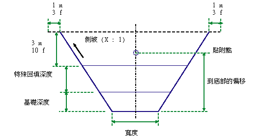 貼附點位於溝渠底部中點上方「到底部的偏移」距離處。