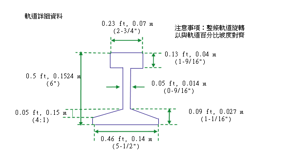 貼附點位於枕木中心線上方與軌道高度相等的距離處。