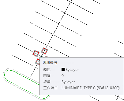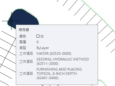 在本練習中,您會將工作項目代碼指定給各種不同的 AutoCAD 物件,包括直線、圖塊和封閉聚合線面積。