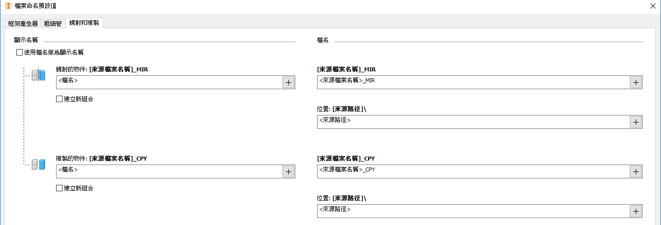 已增強「檔案命名」對話方塊,以支援「鏡射」和「複製」指令。