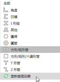 在「品類」下拉式清單中加入了「重新整理品類」,可重建清單以包括自訂可讀寫資源庫項目。