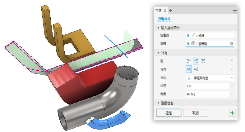 若要取得有關「折彎」指令的更多資訊,請參閱〈折彎零件〉