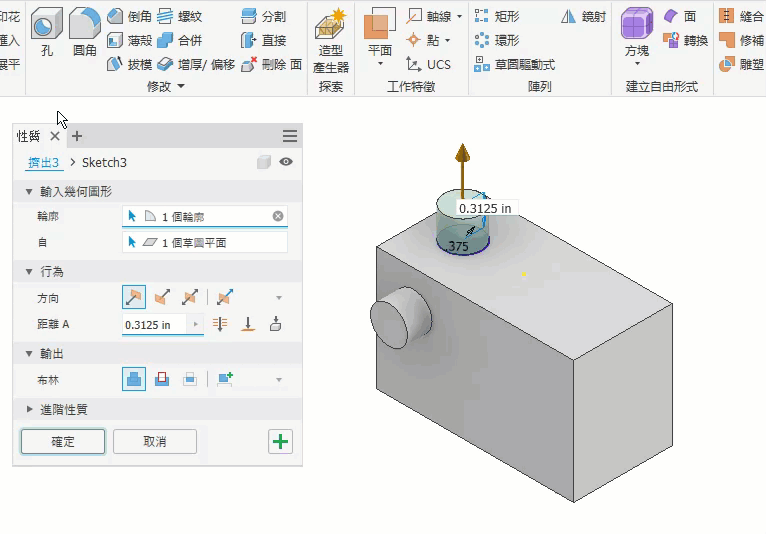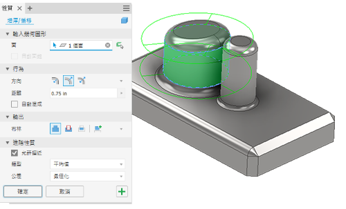 若要取得有關「增厚/偏移」指令的更多資訊,請參閱〈增厚面或偏移曲面〉。