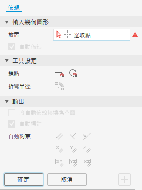 「粗細管佈線」和「導出佈線」指令使用「性質」面板使用者介面。