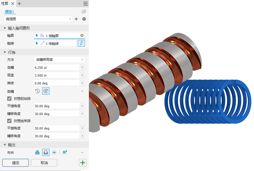 若要取得有關「螺旋」指令的更多資訊,請參閱〈建立螺旋〉