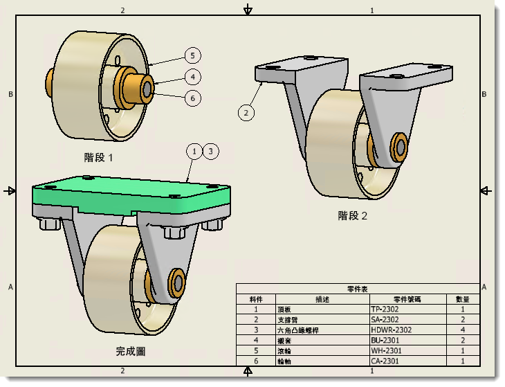 從替代件模型狀態建立的視圖可反映圖面視圖中替代件零件的狀態。