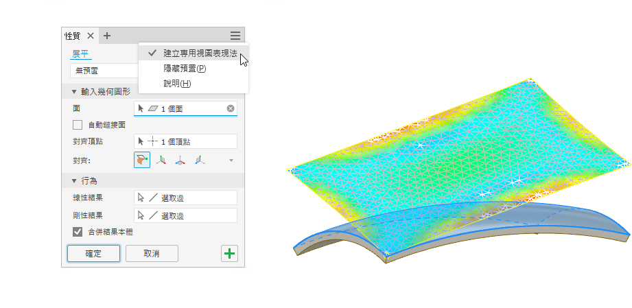 使用「建立專用視圖表現法」選項,可以輕鬆隔離和記錄輸出曲面。