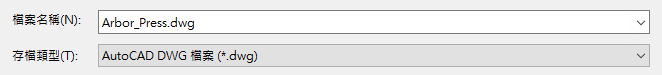 「匯出至 DWG」時,「另存類型」預設會從「Inventor 圖檔 (.dwg)」變更為「AutoCAD DWG 檔案 (.dwg)」。