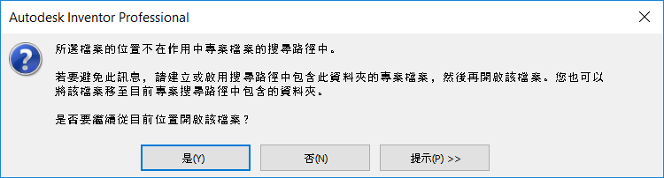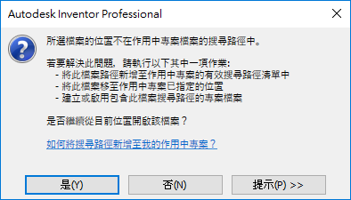 當您嘗試開啟不在作用中專案搜尋路徑中的檔案時,顯示的錯誤處理訊息已更新,以提供有關如何解決此問題的更實用說明: