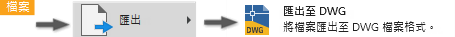 若要取得有關匯出圖檔的更多資訊,請參閱〈將資料匯出至 DWG 檔〉。