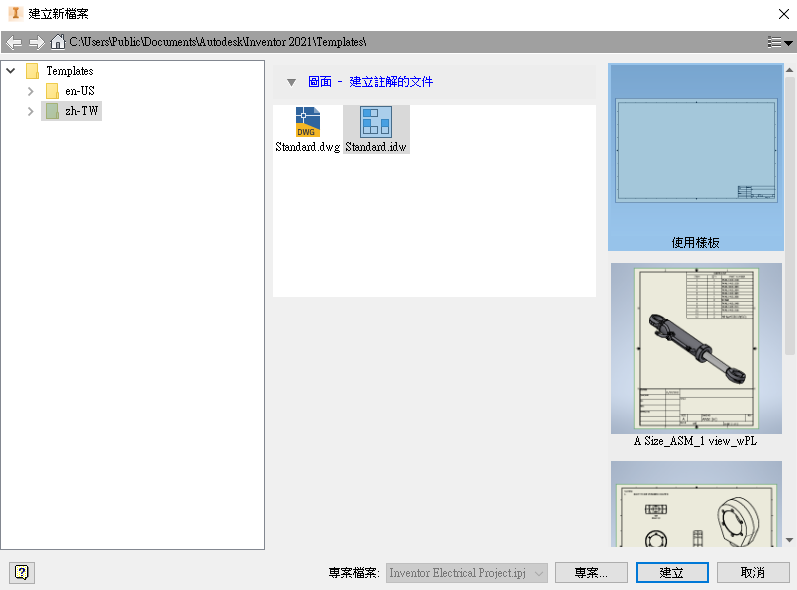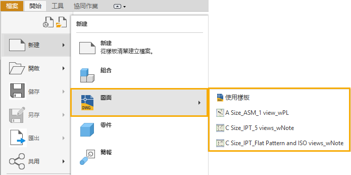 建立新圖檔時直接存取圖紙格式樣板。