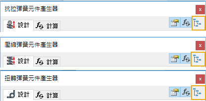 「壓縮彈簧」、「抗拉彈簧」、「扭轉彈簧」指令