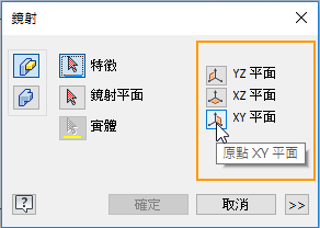 「鏡射」指令進行存取)。工作平面選項現在會顯示: