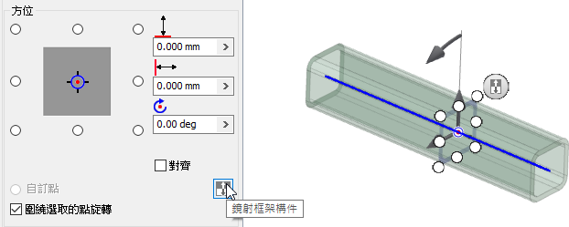 若要取得有關使用鏡射指令的更多資訊,請參閱〈以陣列排列零件特徵〉。