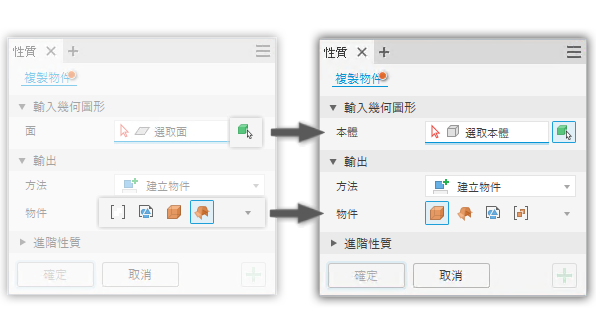 若要取得有關「複製物件」指令的更多資訊,請參閱〈在零件、組合與建構環境之間複製物件〉。