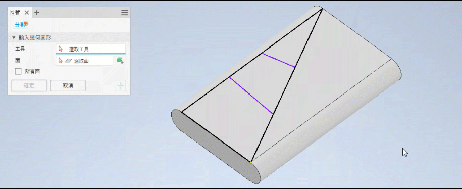 若要取得有關使用「分割」指令的更多資訊,請參閱〈合併或分割本體和面〉