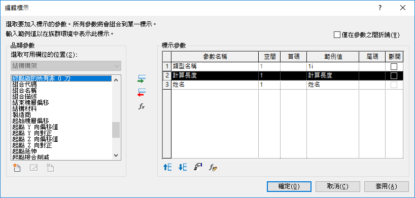 使用「編輯標示」對話方塊為單一或多重參數指定標示。