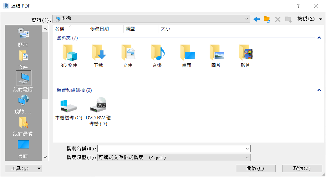連結 PDF 檔或影像可減少匯入至 Revit 檔案中的個別影像數量,而且如果您擔心檔案大小的問題,就可以當作匯入的替代方式。