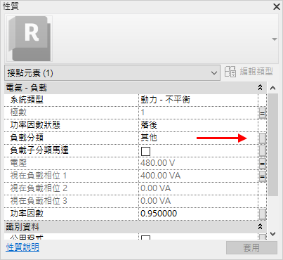 在「性質」選項板上,按一下「負載分類」值右邊的按鈕。