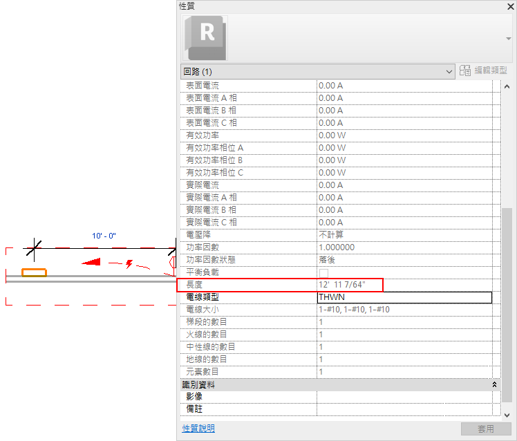 回路中的佈線總長度會計算並顯示為性質選項板中的長度值。