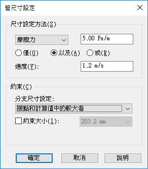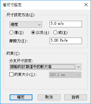如果選取「和」,則管大小必須同時符合摩擦力和速度值。如果您選取「或」,則管大小僅須遵循其中一個規則。以下曲線會展示使用「或」與「和」選項之間的差異: