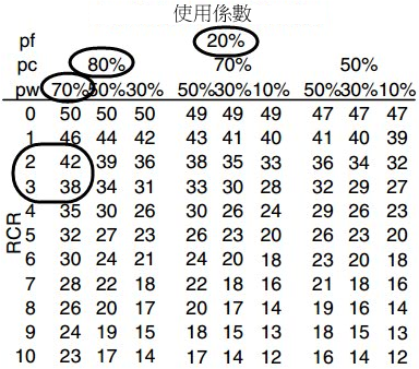 在此範例中:RCR = 2.5 * 6.5 * 100 / 600 = 2.708。