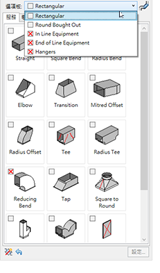 當您按一下「重置」時,目前的 Revit 工作階段期間加入的勾選標記,將從「MEP 製造零件」選項板移除。