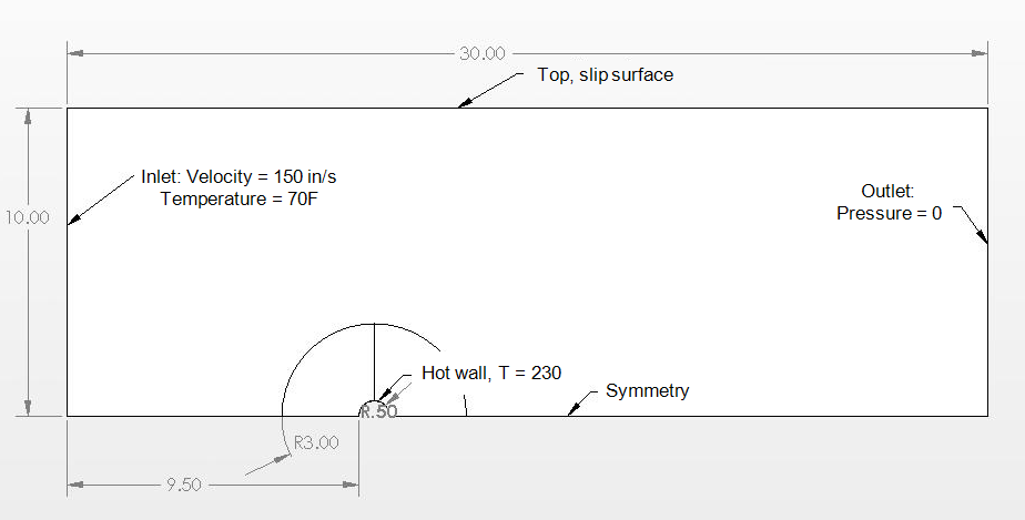 A circular cylinder with an infinitely long (thus approximated as 2D) is immersed in a turbulent water flow having a Reynolds number based on the diameter of the cylinder of 1.0e5. The cylinder wall has a fixed temperature. This case is analyzed to verify the water flow and heat transfer modeling capabilities of Autodesk® CFD.