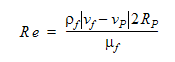 where mp is the particle mass, vp is the particle velocity, Fb is the buoyant force and Fd is the drag force calculated using: