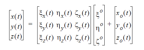 where, (x, y, z) are the global coordinates computed at any time (t).