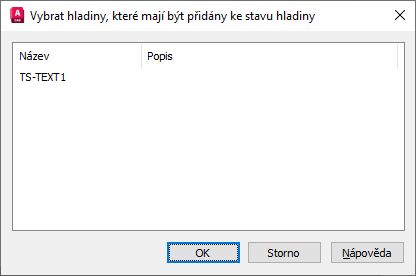 Zobrazí název a popis hladin, které nebyly přidány do stavu hladiny. Vyberte hladiny, které chcete přidat, a klikněte na tlačítko OK.